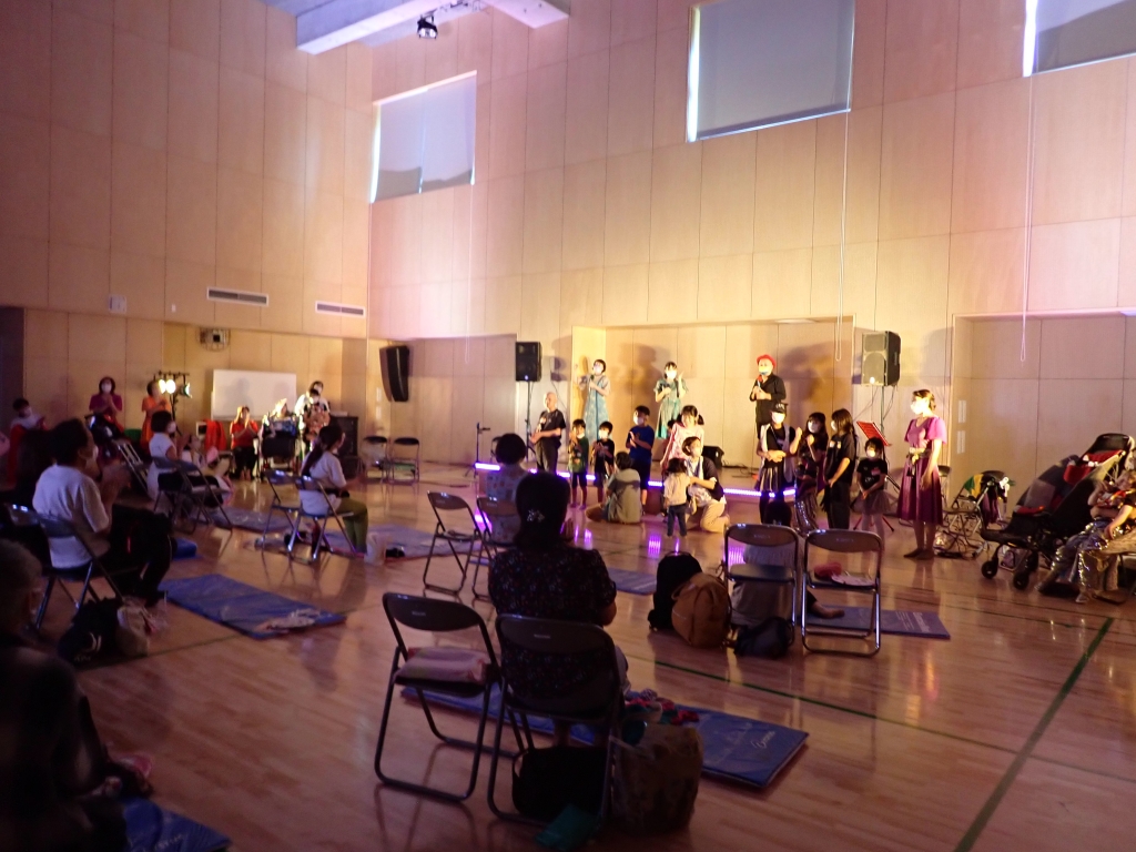 最後の曲では、子どもたちみんなで舞台の前に立ち一緒に歌いました。